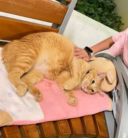 2024年10月6日,他在黄埔送餐时注意到一只名为“Field Field”的橙色社区猫。这只猫深受居民喜爱。