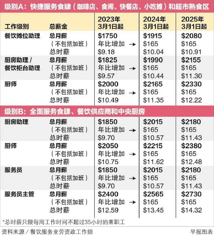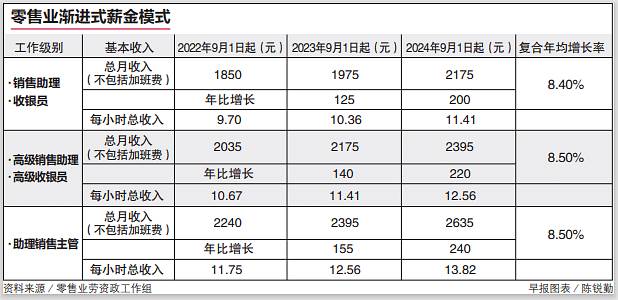 从2014年开始,新加坡各行业开始先后实施渐进式薪金模式。上述的零售业及餐饮服务业的渐进式薪金模式分别在2022年9月和2023年3月推出。