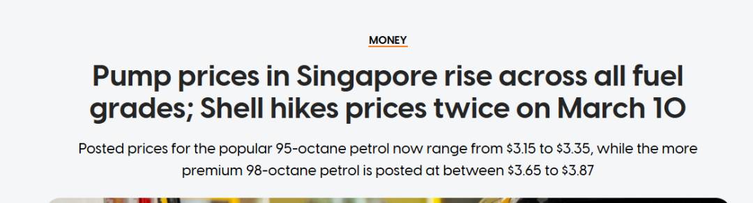统计了下这几天的涨价趋势,从2月底中东局势升级后,在短短10天内,新加坡本地的油价已经出现过了3轮明显上涨。涨幅超过16%。