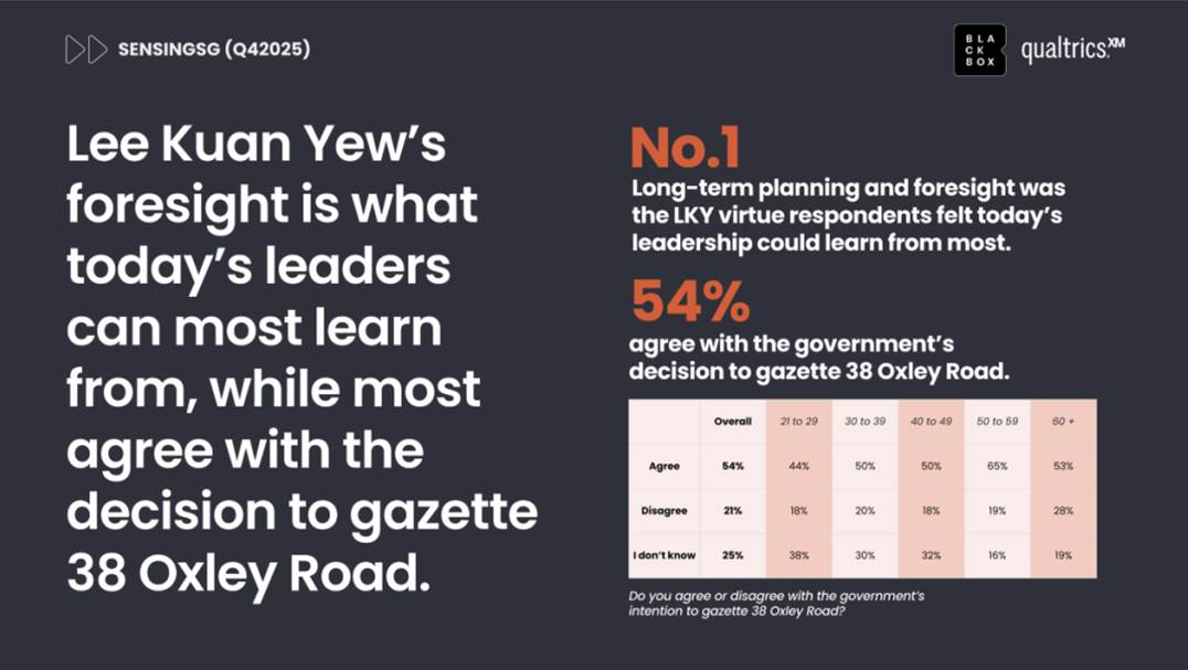 根据Blackbox Research最新发布的第四季度调查报告,54%的新加坡民众支持将建国总理李光耀故居欧思礼路38号列为国家古迹。这一决定在社会中引发了分化的反响。