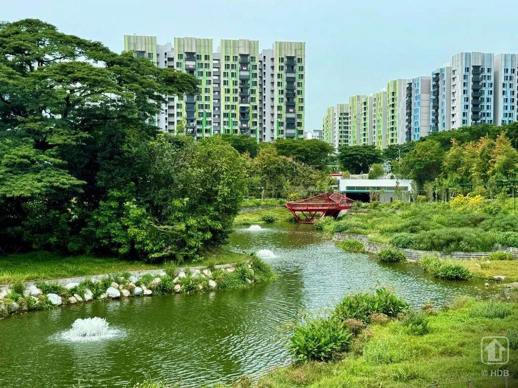 这里的组屋,不是那种一排排密密麻麻的老式组屋。这里的房子密度低、绿地多,住起来很舒服。而且很多单位正对阿卡夫湖(Alkaff Lake),视野开阔,没有阻挡。