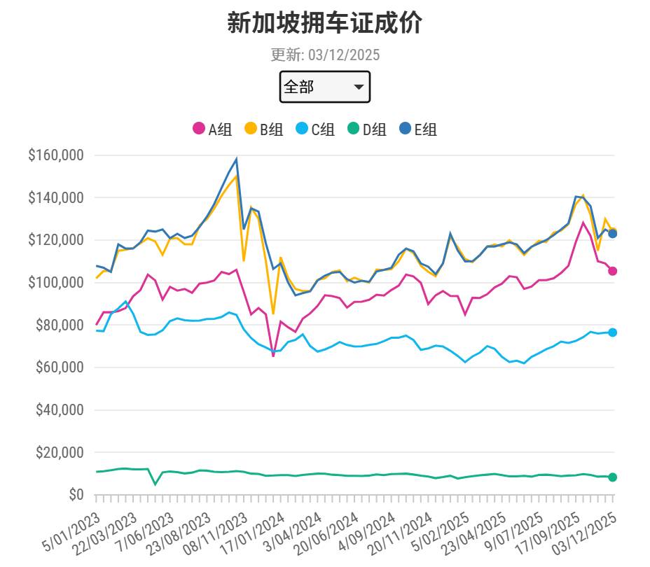新加坡12月首轮拥车证投标结果出炉,三大汽车组别成交价格全面回落。其中中小型车组连续四轮下跌至10.54万元,大型车组降至12.39万元。季节性需求减弱成为本轮价格调整的主要因素。