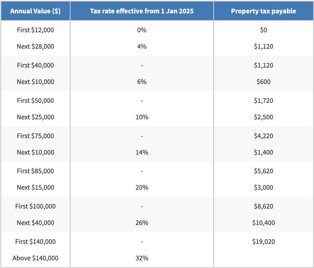 从去年1月1日开始,新加坡对这部分房产税税率做出了调整。以下是适用于2026年自住房产的税率: