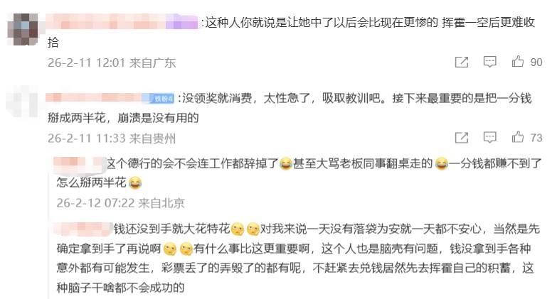 很多网友对小喜的行为感到不理解,难道不应该先领了奖再消费嘛?