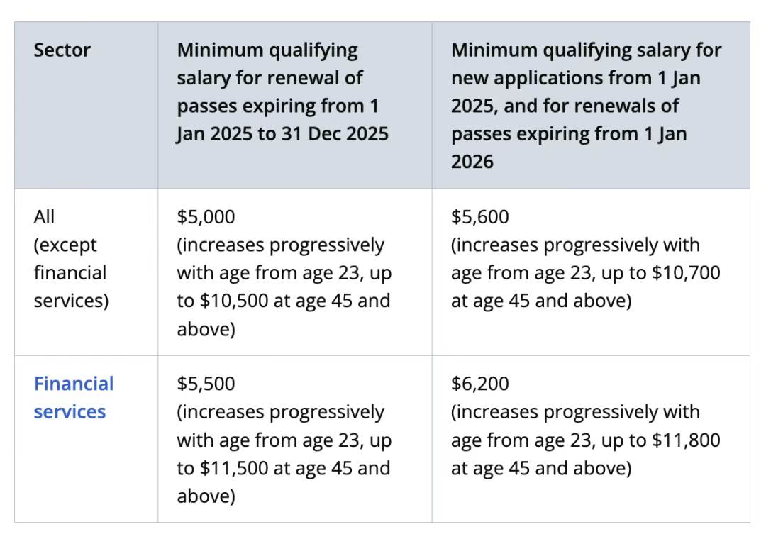 45岁及以上申请/续签者,薪资要求甚至可能会达到10700新元/月(金融行业为11800新元/月)。