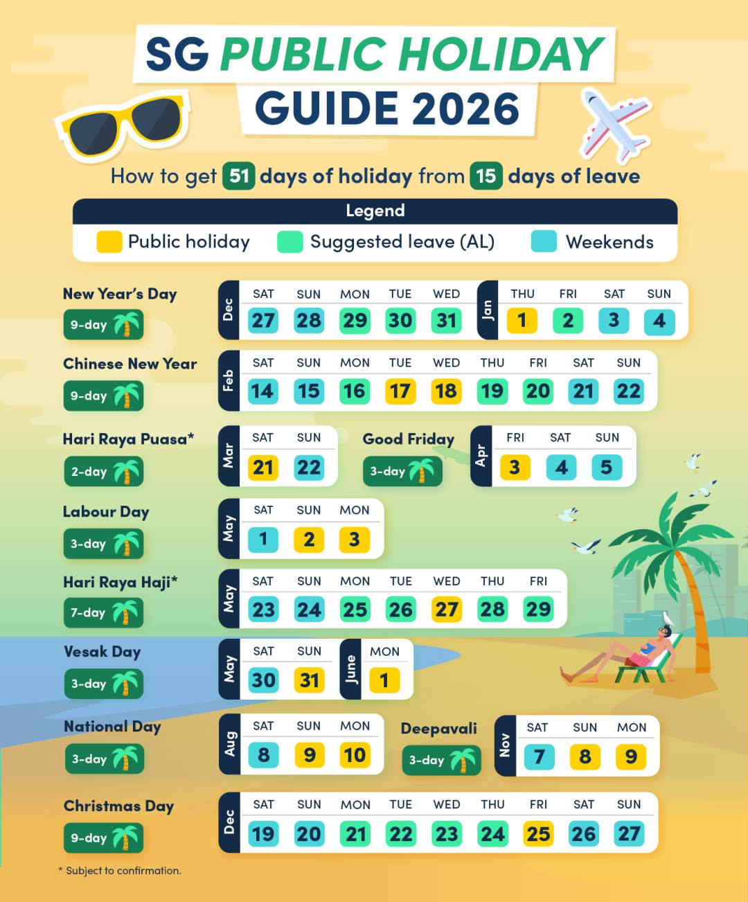 新加坡人力部此前公布了2026年公共假期日期,明年我们能享受11个官方公共假期。