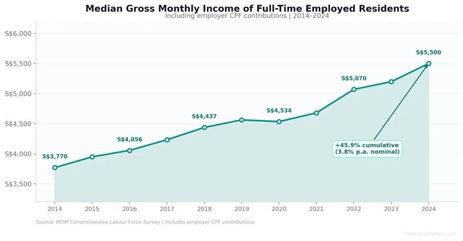 名义上,个人收入中位数从2023年的5197新元增长了5.