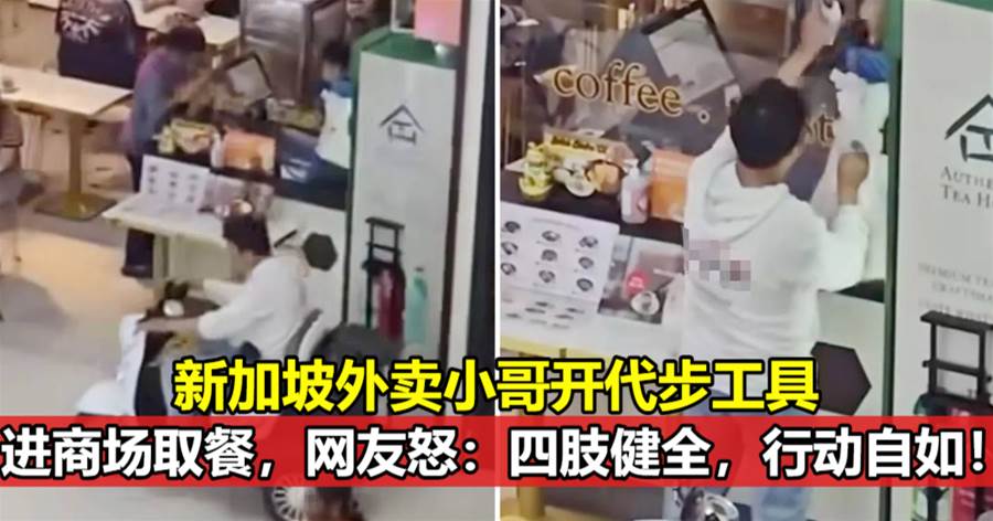 送餐员行动自如,却使用行动辅助工具到商场里取餐,被民众拍下视频放上网留言炮轰,指看不出对方有任何行动不便,觉得他滥用行动辅助工具。