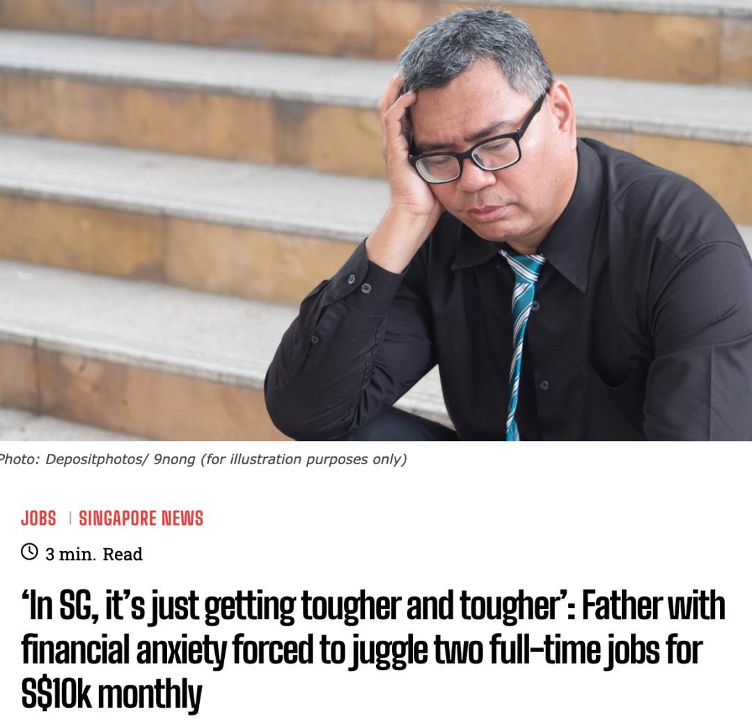 自己同时打着两份全职工。白天一份工作赚6000新,晚上再一份赚4000新,一个月加起来大概一万新币。
