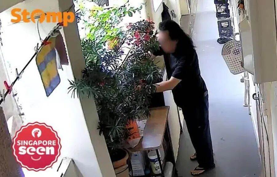 新加坡男居民趁屋主不在家时,走到对方门前剪下“发财树”枝叶,全程被闭路电视拍下。屋主愤而公开视频,大叹新年“发财树”被剪不吉利。