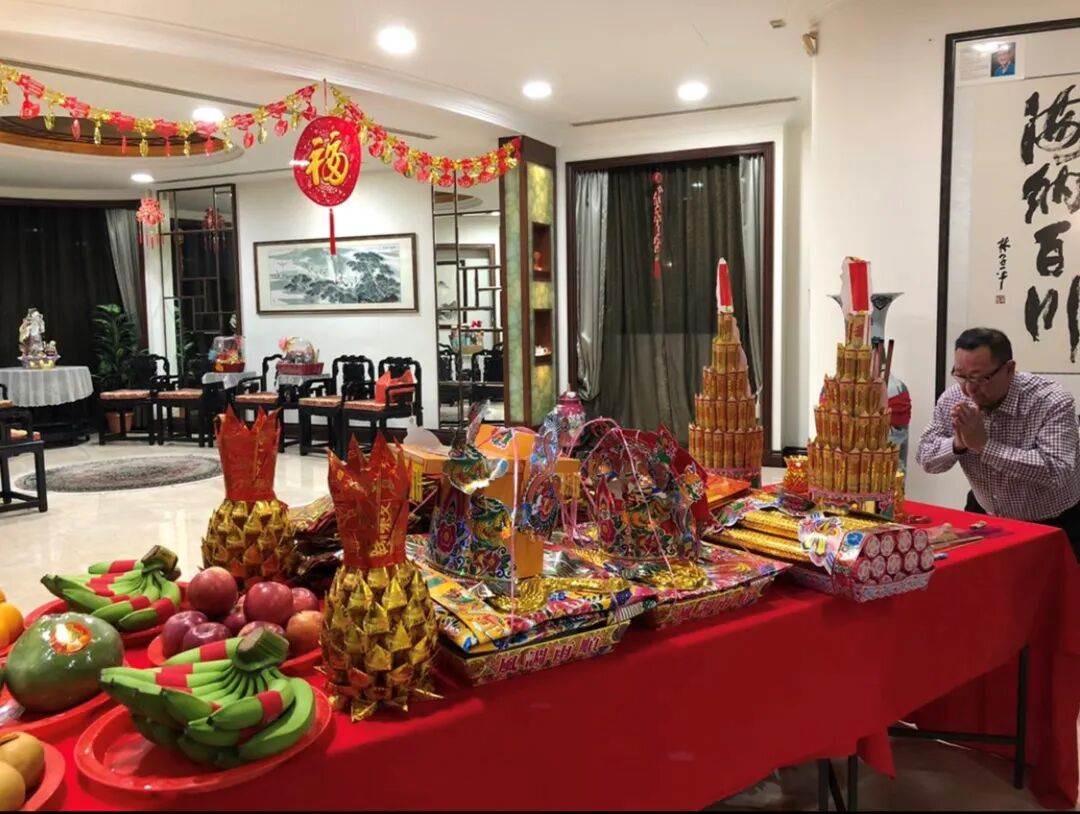 拜天公前,家家户户都要打扫卫生,准备丰富的贡品。