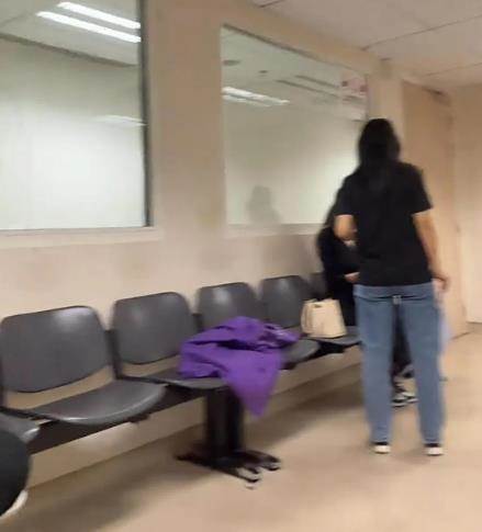 画面中可见,房内至少有三名女子在玻璃窗前等候,其中一人正在通电话,另外两人低头使用手机。