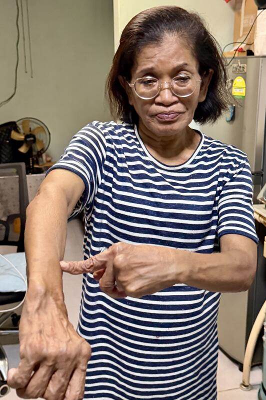 她忆述,兰礼背部中刀后赶紧拿起塑料椅抵挡,但混乱中左前臂与额头又挨了刀,衣服都被鲜血染红。