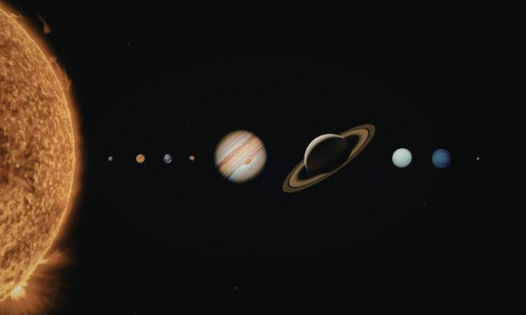 太阳系的八大行星大致在同一平面上绕着太阳运行,但每颗行星的运行速度和距离不同。