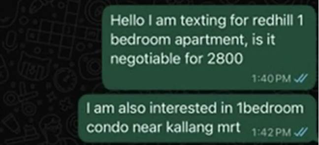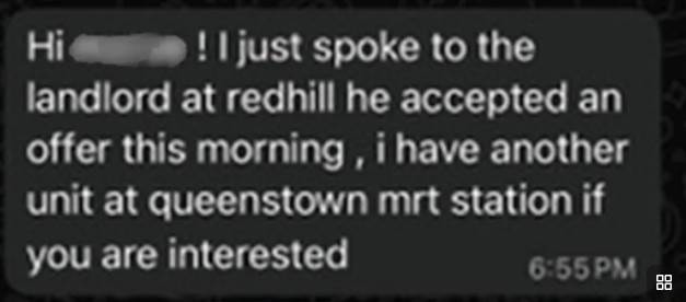 Rachel最初在社媒上刷到一个一室出租的信息,月租3000新元,比周边市场价稍低,Rachel一看这个价格在租房预算内,立刻联系对方罗恩(化名,自称是房产中介)。