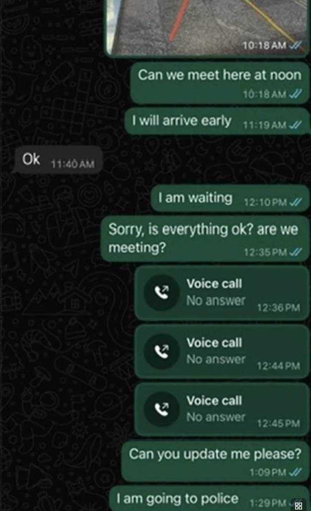 在Rachel转账三天后,Rachel通过WhatsApp联系罗恩,想要中午在公寓碰面交钥匙,一开始罗恩还答应了请求,可到了约定时间,Rachel在公寓等了好久都没见到罗恩的身影。