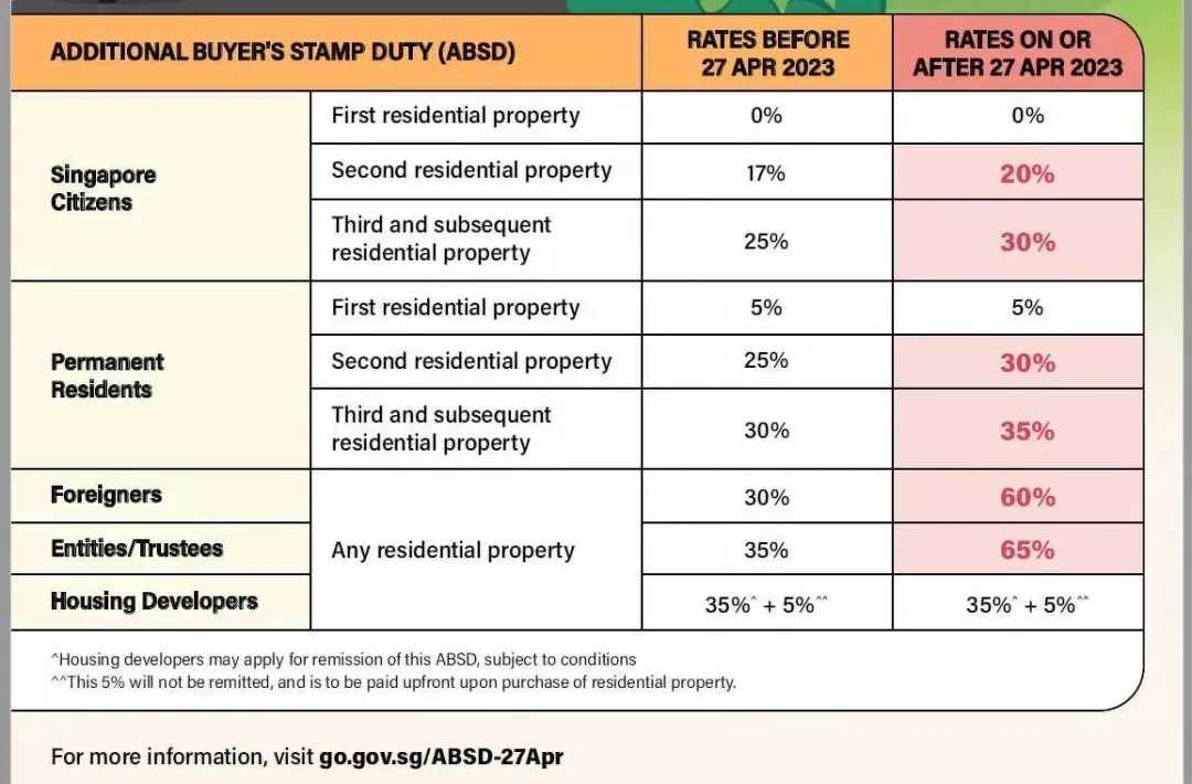 其次,新加坡买房是要交税的,外国人购买首套房子,得交普通买家印花税(BSD)以及60%的额外印花税(ABSD)。