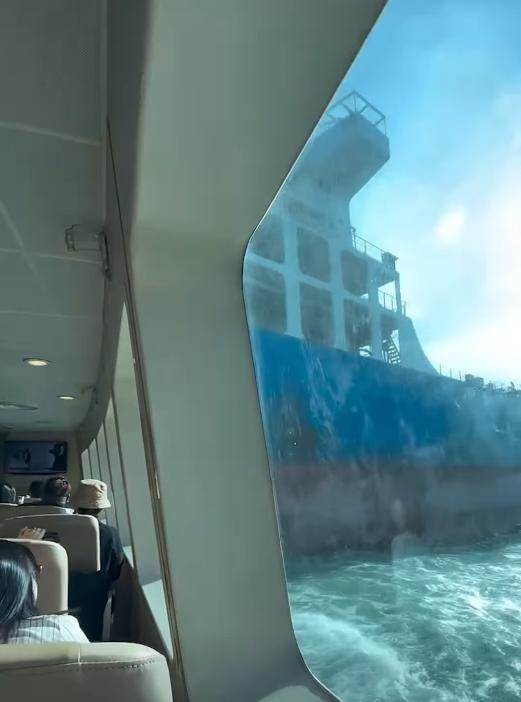 峇淡岛回新加坡渡轮在海上与货轮相撞!