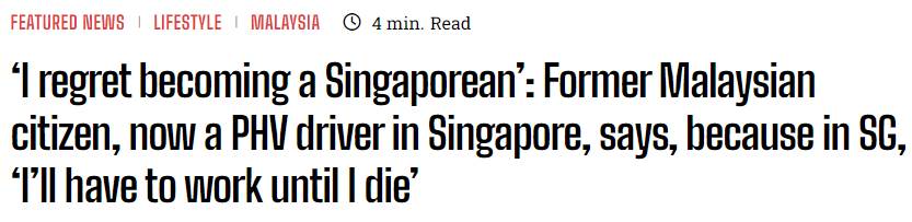 深夜,一位出生在马来西亚、退籍后加入新加坡籍网约车司机载着乘客穿梭在新加坡闪烁的霓虹中,平静地说出一句令人心惊的话:“我会(必须)在这里工作到死。”