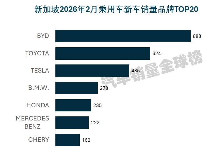 2026年2月,比亚迪在新加坡再续辉煌,卖出888辆,依旧稳坐销冠宝座,碾压丰田、特斯拉、宝马等一众老牌汽车品牌。