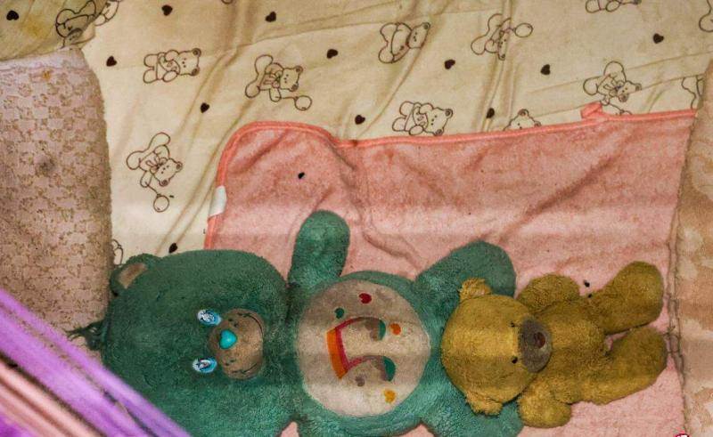 在其中一个摊位内可见一张床褥,上面摆着两只看似破旧的玩具熊。(陈斌勤摄)