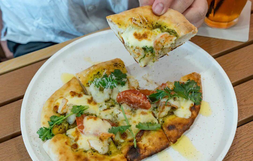 Redhill 的 HDB 楼下小店 Cafe Fufu,能用 CDC 代金券吃到美味木烤酸面团披萨。