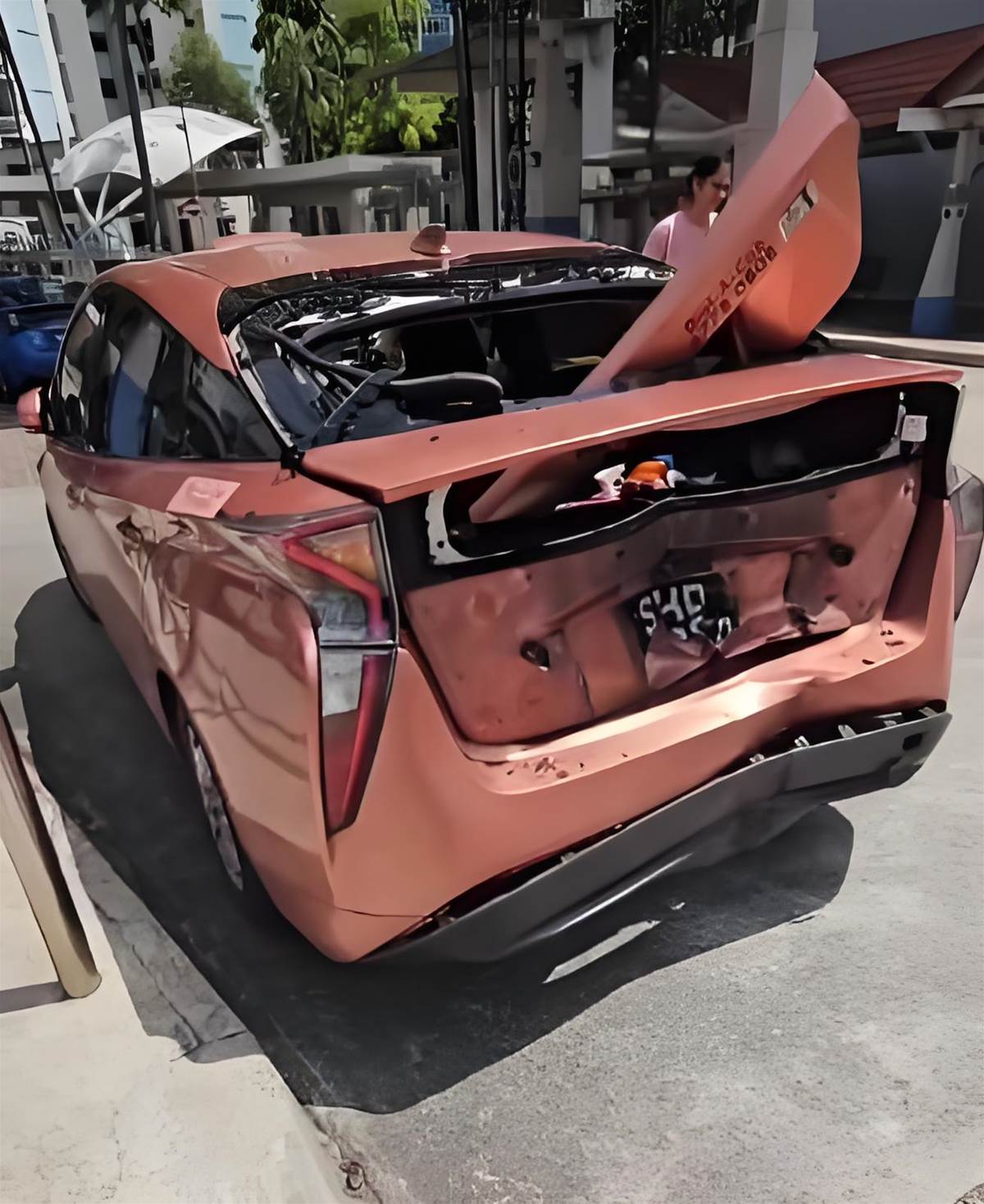 ? 车祸现场:骑士被抛上德士车顶