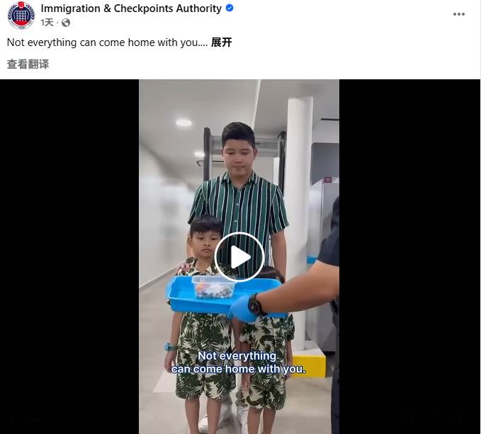 近日,新加坡移民局在社交媒体发布视频,提醒大家从海外返回新加坡时,切勿把一些未经许可的海洋生物带回家。