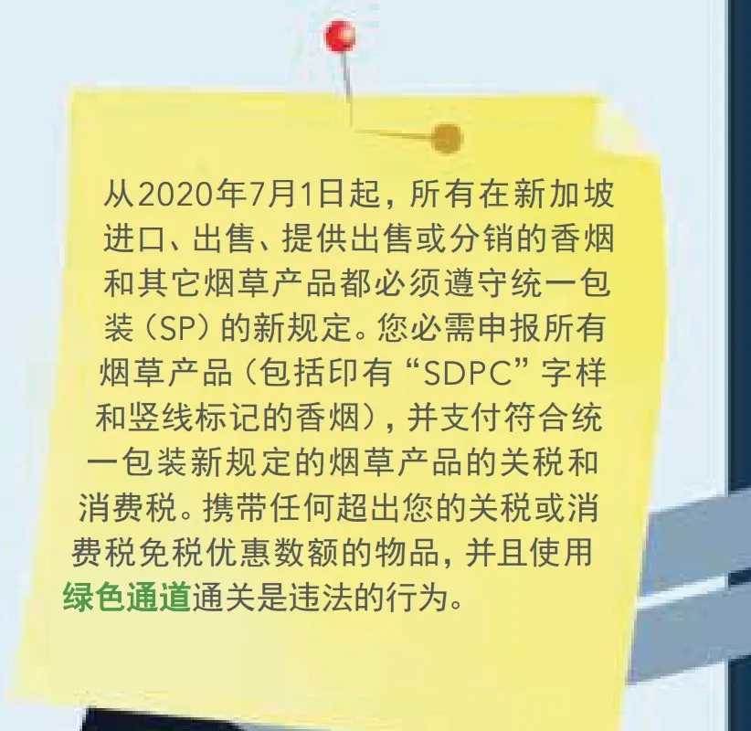 根据新加坡海关条例,所有入境人士如果有携带香烟,哪怕只带一根,都要向海关申报并缴付税款,违例者初犯罚款200新元(每包香烟),再犯的话罚款金额则会增加到500新元。