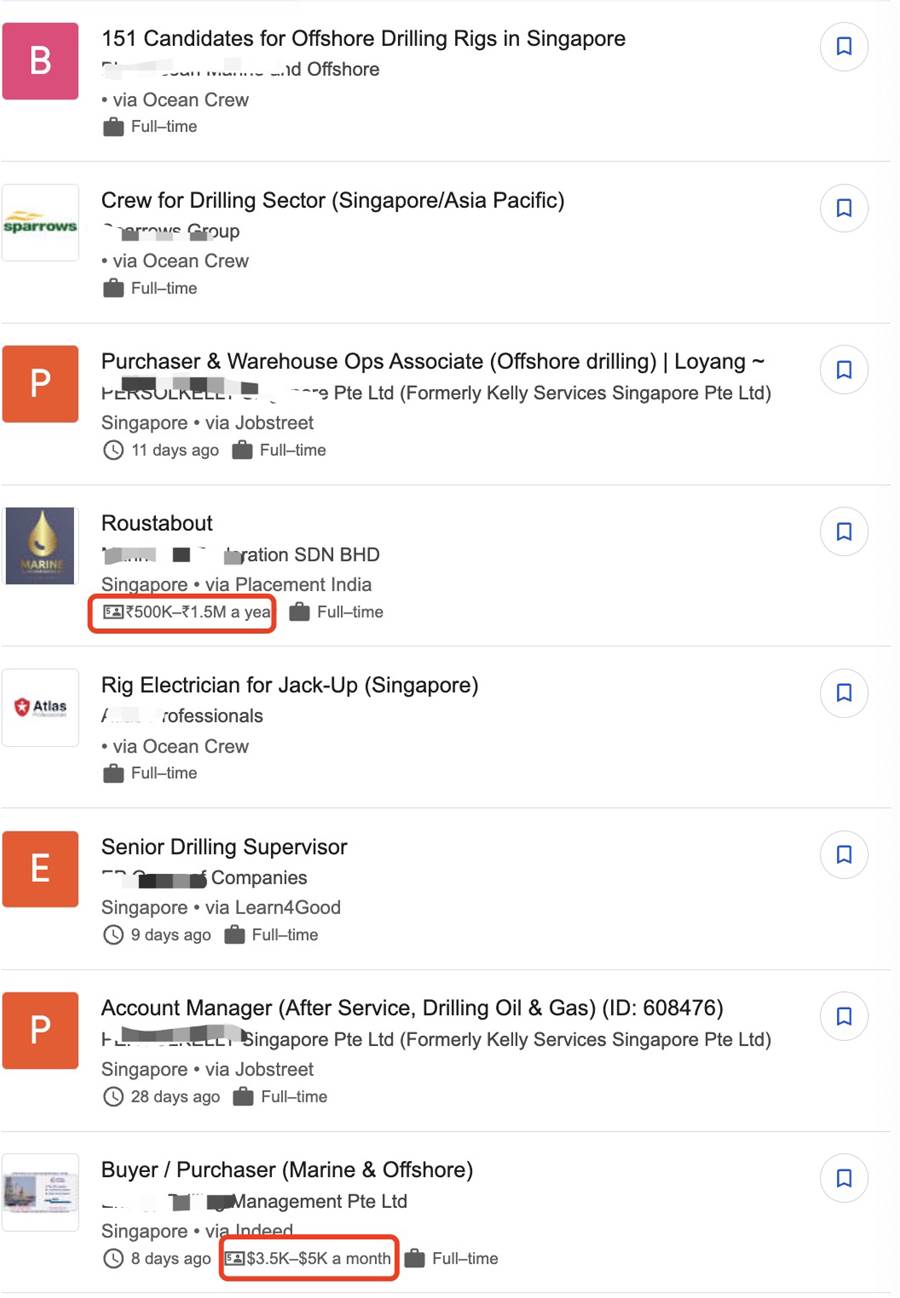 海上作业当中,石油钻井工/井架工是公认的高薪工作,年收入接近9万新元,轮班工作14天,休息21天,从这些条件来看,这份工作看起来高薪且休息时间充裕。而且也不需要很高的学历,市场招聘需求也不低——