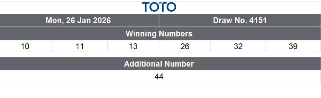 根据新加坡 Singapore Pools 官网 公布的数据, 1 月 26 日 最近一次抽奖的号码是: