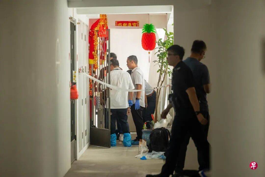 记者上午赶往现场时,警方正在封锁范围里展开调查,单位外还张贴着红色对联和一些新年装饰。据观察,数名警察在单位外驻守,而事发组屋楼下停着一辆犯罪现场调查车和两辆警车,现场气氛凝重。