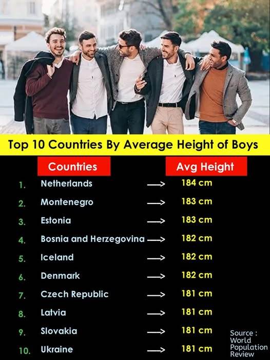 爱沙尼亚的男生身高同样逼近183cm。北欧东欧的小伙伴们属实是“海拔优越”了。