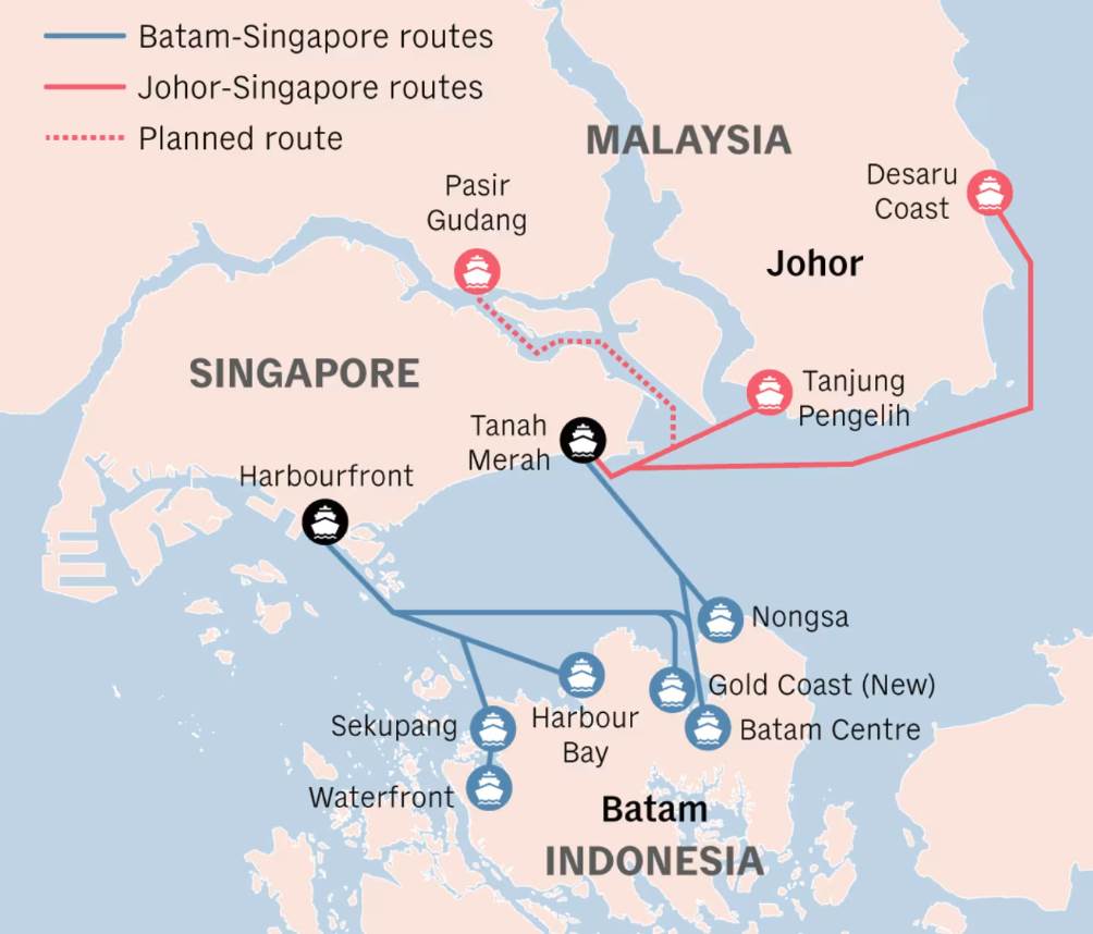 随着这条新航线加入,新加坡与峇淡岛之间的渡轮航线已增加至六条。其他五个目的地码头包括: