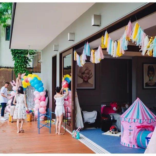 而客厅就以简约温馨风格为主,摆放了两张长形餐枱,黄婉佩透露他们一家人会在可坐8人的云石餐枱食早餐,而晚餐就会在另一张可坐约14人的木餐枱用餐,整个饭厅空间阔落,方便宴请亲友。客厅内还摆放了一部三角钢琴,是黄婉佩老公送给她的生日礼物。屋外还设有一个大泳池,黄婉佩不时会同一对仔女在泳池玩水,尽享亲子时光!