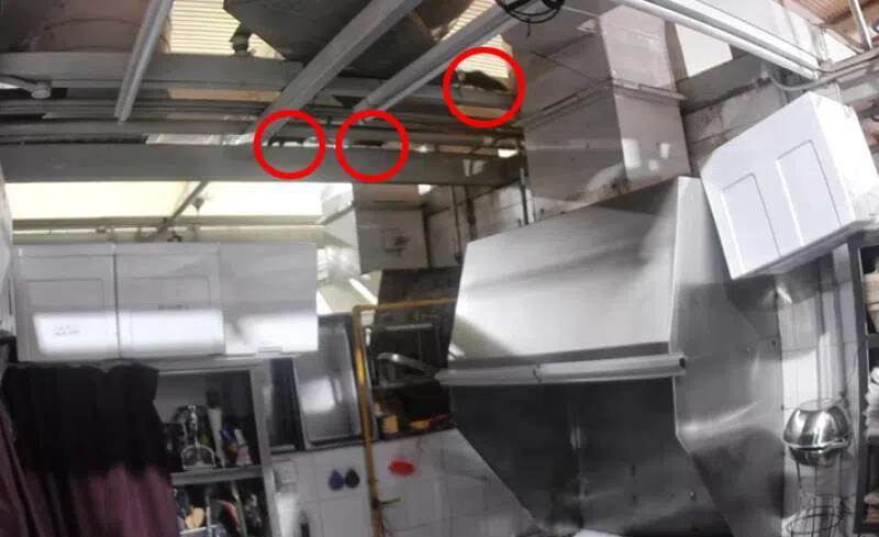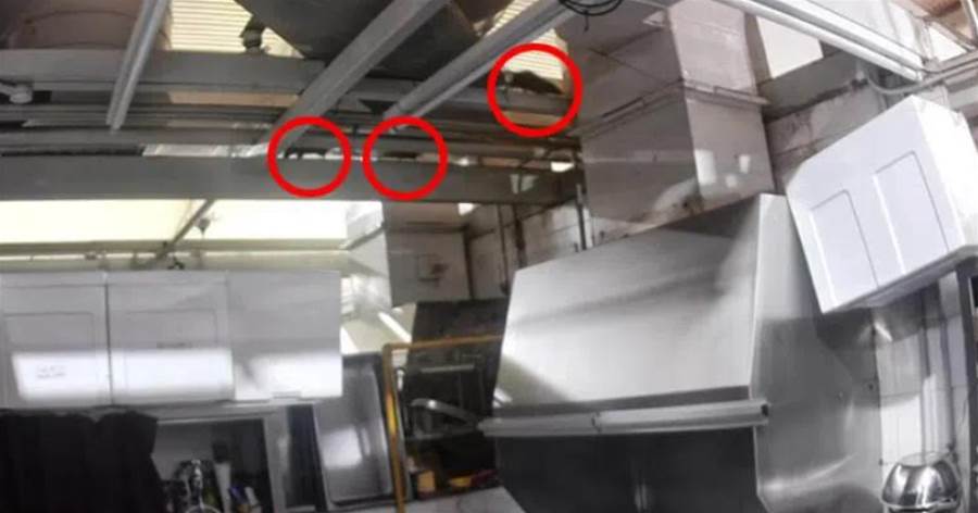 “之前电眼对准摊位,并没有看到老鼠,后来电眼对准上方,才发现老鼠在横梁上走动。”