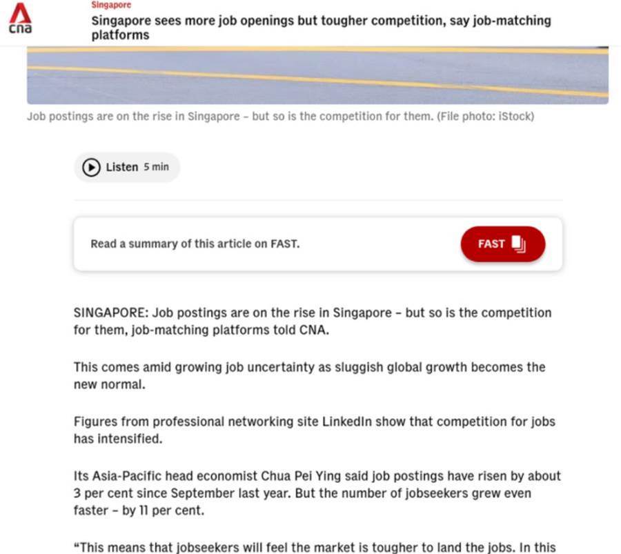 这意味着新加坡求职者的增长速度,是岗位增长速度的近4倍。