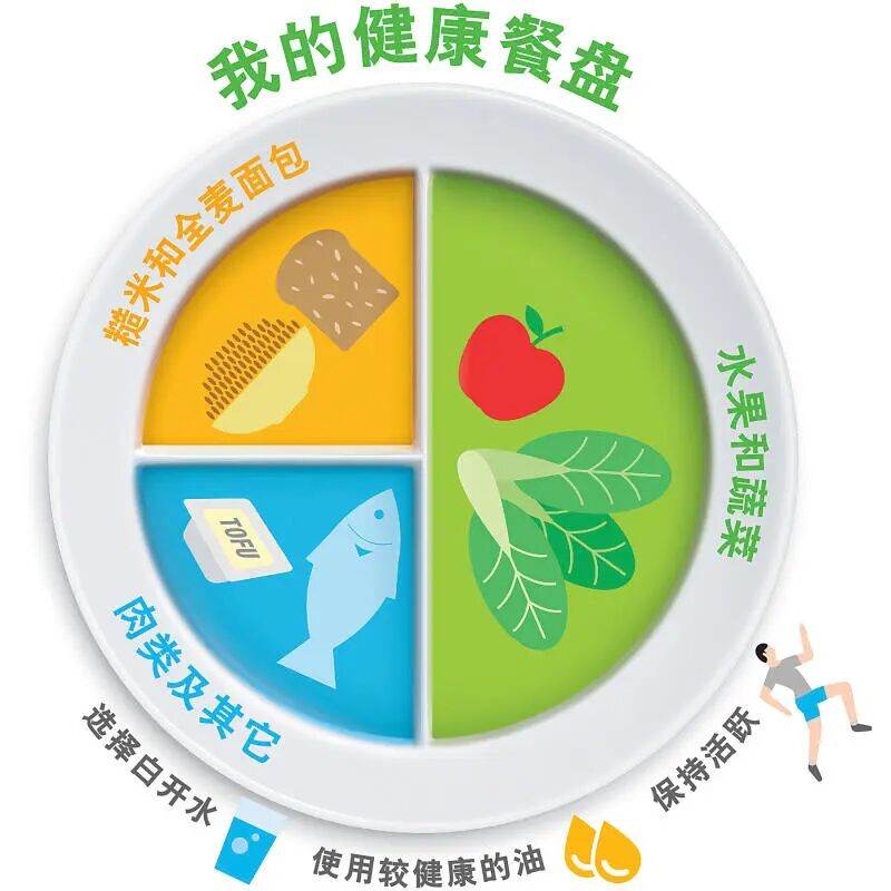 根据该指南,要做到饮食均衡,餐盘的一半应是蔬菜和水果,四分之一为蛋白质,另四分之一则应由全谷物或碳水化合物组成。