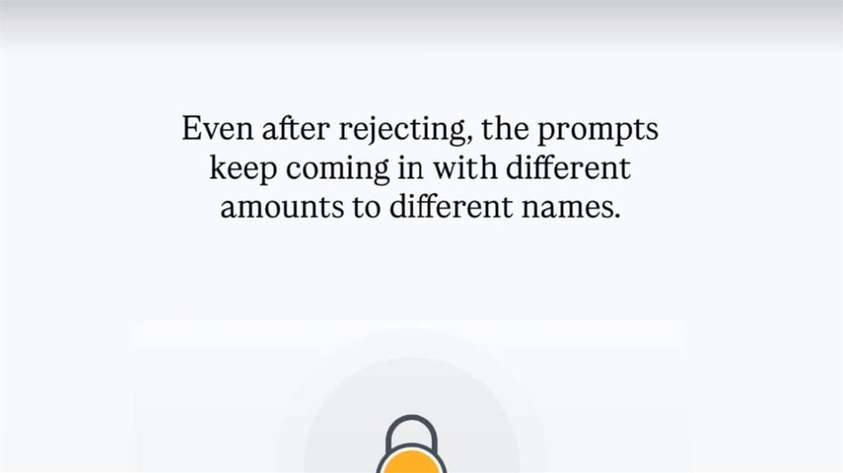 意识到遭遇诈骗后,凯丽立即拒绝付款并紧急冻结了银行卡,却仍不断收到不同金额、不同收款人的付款请求通知。