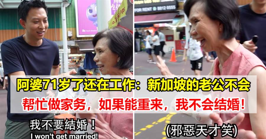 近日,新加坡一位老婆婆的采访视频火了,她说:新加坡的老公不会帮忙做家务,如果能重来,我不会结婚!