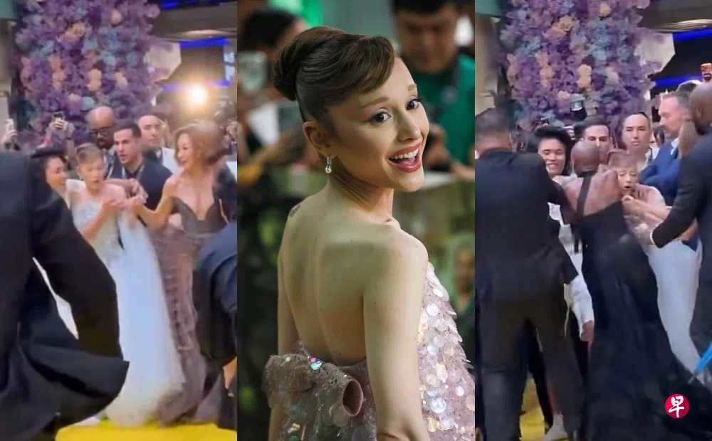 Cynthia Erivo则迅速上前挡在两人之间,试图将男子的手从Grande肩上掰开,被网民盛赞反应快过保安。至少四名保安随后制服并将男子带离黄毯。