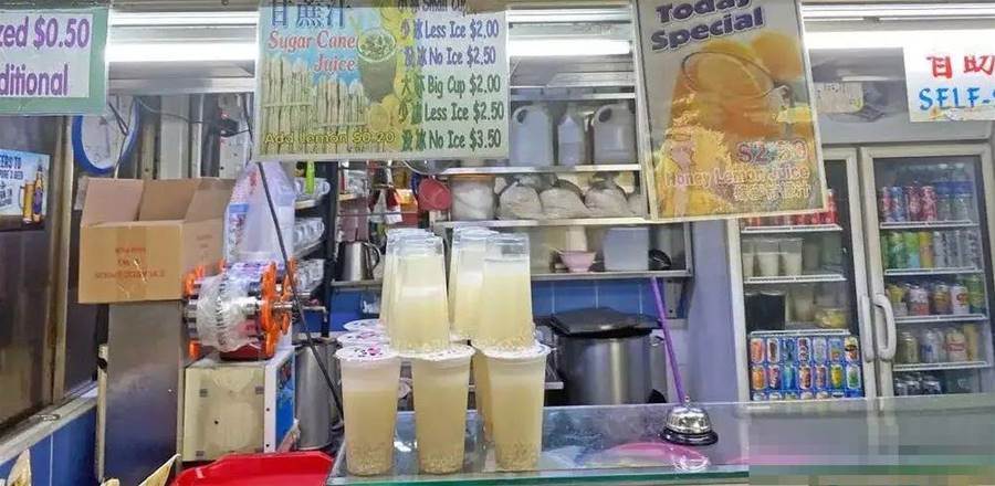 这个饮料摊位于麦士威熟食中心里一家生意火爆的“天天海南鸡饭”旁边。光是人流量就让人羡慕啊!