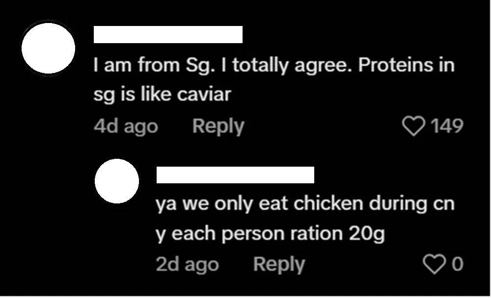 “我来自新加坡,我完全同意。在新加坡,蛋白质就像鱼子酱一样(矜贵)。”