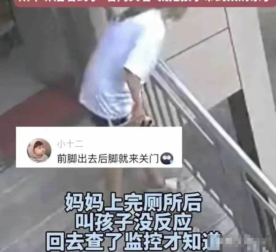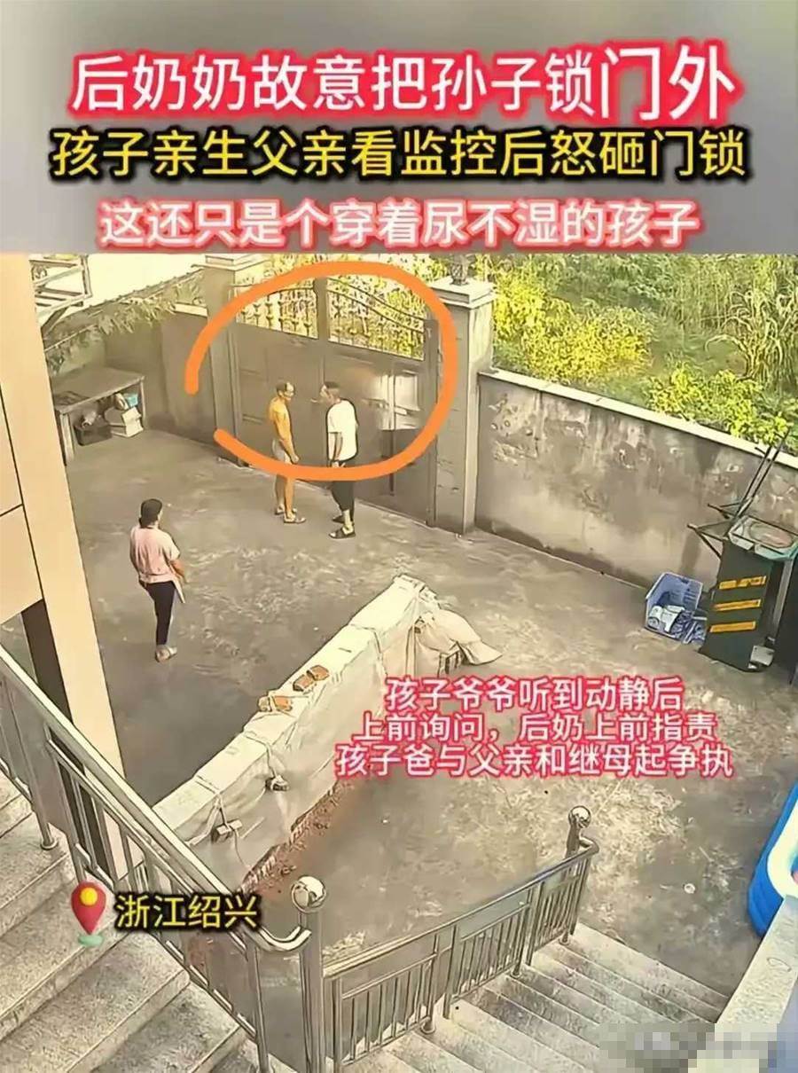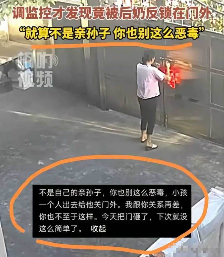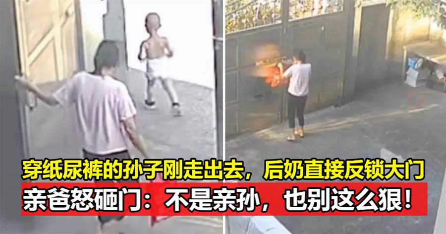 孩子刚走出大门不到半米,紧跟其后的后奶竟迅速将门锁上,丝毫不顾孩子的安危。