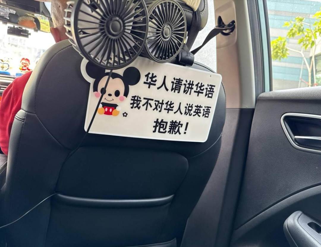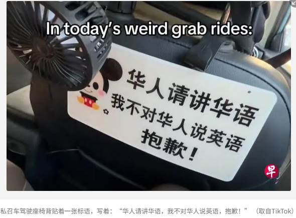 一对讲英语的华人夫妇乘坐 Grab 私召车,却遇到一名明确写着——“华人请讲华语,我不对华人说英语” 的司机。