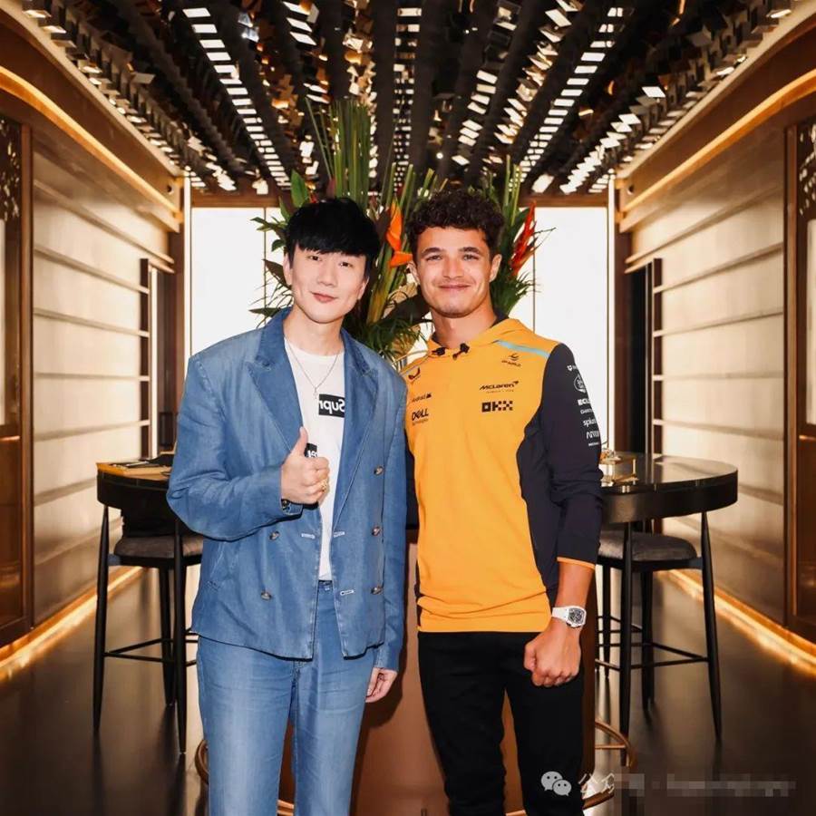 林俊杰早前在脸书发布,他很高兴与车手Landonorris的见面。
