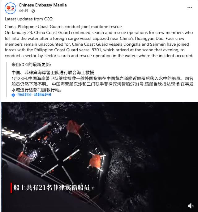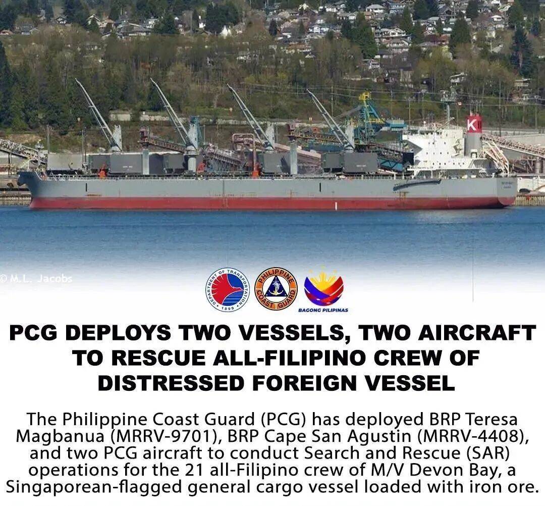 菲律宾救援队也迅速响应,部署两艘船只和两架飞机参与救援,全力搜寻船员。