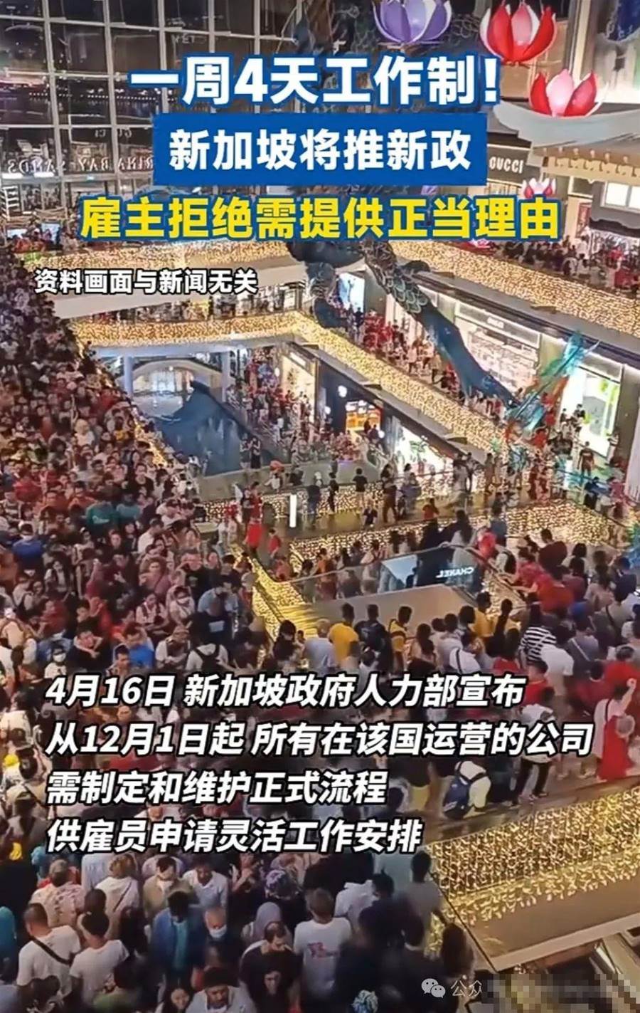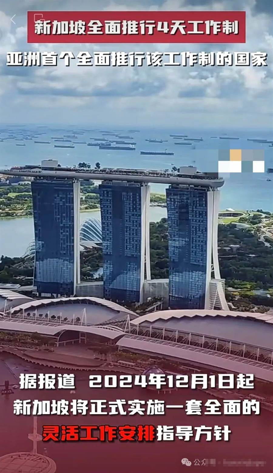 还有视频说新加坡全面推行4天工作制后,会有不同的配套让员工自己的时间选择,薪资福利等还保持不变。