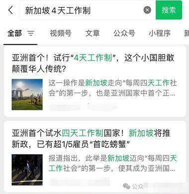 在微信上搜一搜,也可以看到不少新加坡将试行4天工作制的报道。