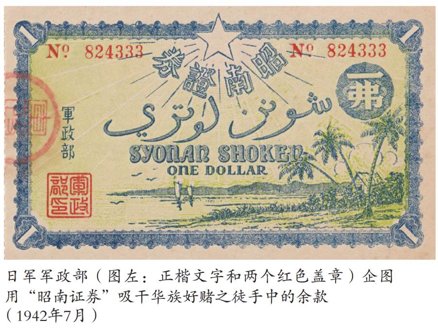 原来,马来军政监部突然卖起有奖彩票“昭南证券”。什么叫“证券”?其实,就是彩票。抽奖仪式在前维多利亚剧院举行。一等奖赏金1名10万元、二等奖1名5万元、三等奖10名各1万元,以及第四奖50名各1000元,总奖金30万元。日军付出30万元。但是,彩票一共卖出100万枚(各1元),日军从中“赚取”70万元!每个月都搞一搞,就每个月能赚个几十万!妥妥的有赚不赔!谁知,半路杀出个程咬金!原来日军里头也有赌鬼,他们也争先抢后的买起了彩票!但日军搞彩票的真正对象是贪赌的华人,目的是企图抽干华人社群里剩余的“浮游购买力”!